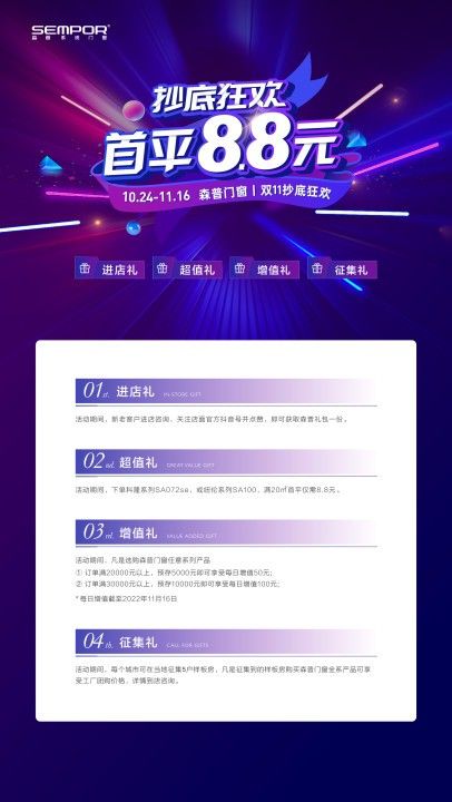 家里装修的朋友真的这次要抓紧机会,高端系统门窗品品牌森普也放出大招,首平8.8元,这不是四舍五入等于不要钱吗!