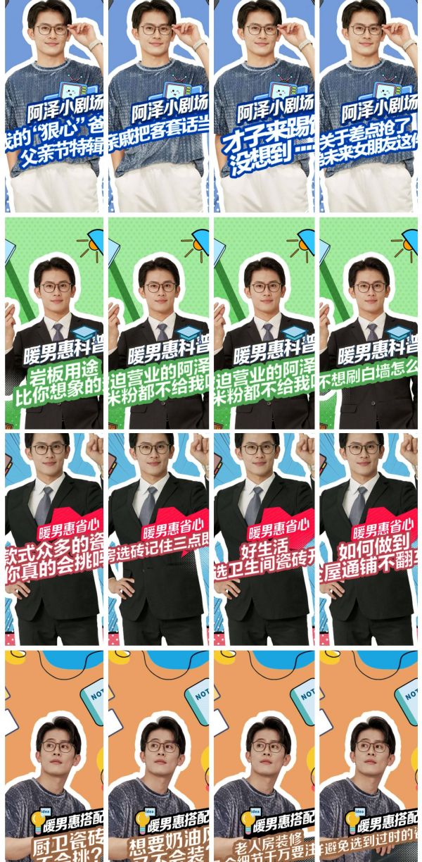 通过惠万家品牌化身的IP人物——阿泽,一位帮顾客、身边亲朋好友积极解决装修难题的顶ji销售,在预设的日常化情景中,从室内设计到装修避雷,细化到厨房设计、卧室设计,再到办公角、阅读角这类新式的设计理念,甚至到绿植、小物件等细节,整个内容是逐层细化的,覆盖方方面面的。