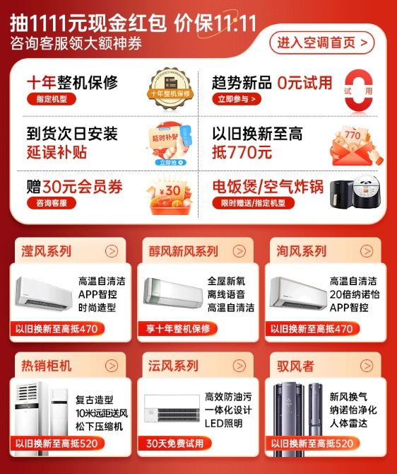双十一空调好物热卖中,松下空调爆款产品强势推荐!