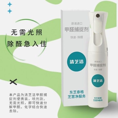 东芝集团子公司杭芝机电推出的清芝洁甲醛捕捉剂就是一款急速起效的甲醛治理产品,专门去除醛类物质(甲醛、乙醛),针对家具板材中,以及散布于室内空气中的醛类污染具有卓越的去除效果。