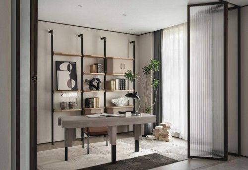 书房看似没有与客厅任何明显的分割,自由随性,但当拉上那扇门,便可以安放澄澈的心灵,感受内心的富足与安定。