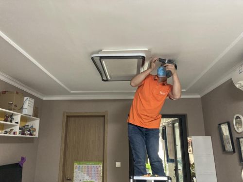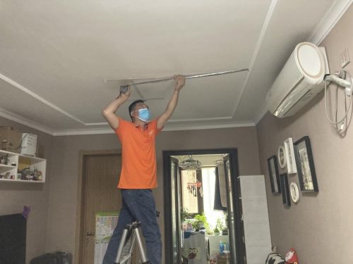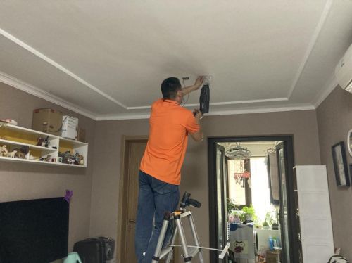 接下来,张师傅将客户家的旧灯小心翼翼地拆下来,经过认真测量需要安装灯具的位置后,开始打孔,动作十分熟练,并在打孔时套了塑料袋,为了防止灰尘掉落。打孔结束后,将需要安装的吸顶灯细致地安装好。