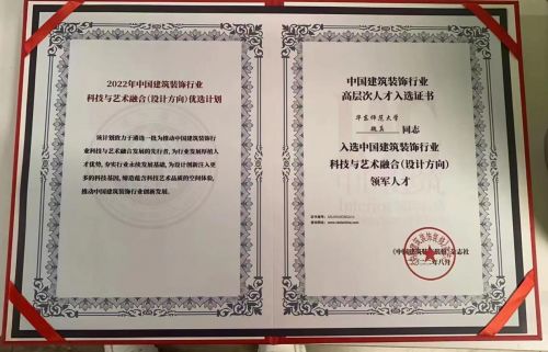 魏真博士入选中国建筑装饰行业科技与艺术融合(设计方向)领军人才