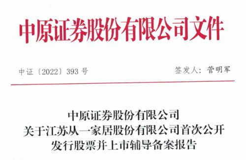 家居丨从一家居启动A股上市辅导 注册资本6646.35万元