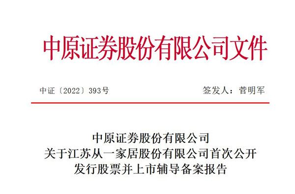家居丨从一家居启动A股上市辅导 注册资本6646.35万元