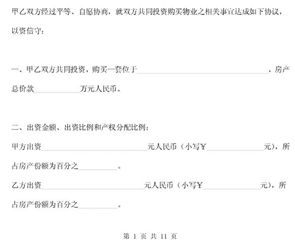 发小听他这么一说,心里也犯起了嘀咕。我也不免存在这样的疑问,我们找到一位律师,律师告诉我们,可以在买房前签署一份合资购房协议。
