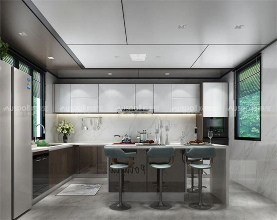不同于客餐厅这些干燥的家庭休闲活动区域,厨房与卫生间作为做饭、淋浴的家务生活空间,往往涉及很多问题:管道多、湿度大、油烟重,位置高难以清理等。因此在选择厨卫吊顶材料的时候除了美观,最需要考虑的问题就是防潮与油污问题了。