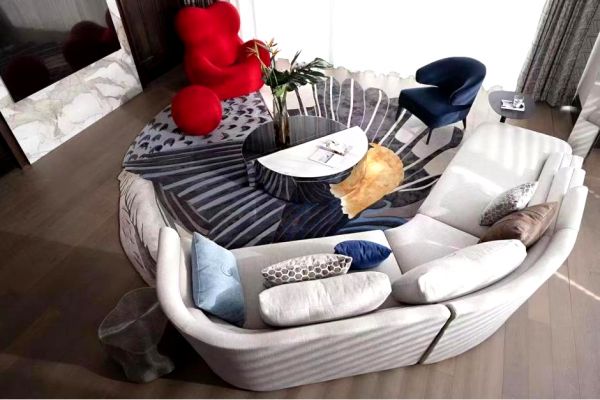 在地毯材质的选择上,除了传统的羊毛、涤纶等材质,还可以选择一些新型材料,如用海洋藻类原料制作成的海藻纤维地毯。它具有吸湿性,强抗污性等特点,容易清洗打理,不仅耐磨抗踩,还具有天然阻燃性,是一种可降解的绿色生物材料地毯。这款以海藻纤维制作而成的羽毛图案地毯,色彩丰富造型时尚华丽,铺陈在客厅区域,不仅美观还具备良好性能,是打造冬日温暖家居必不可少的一款单品。