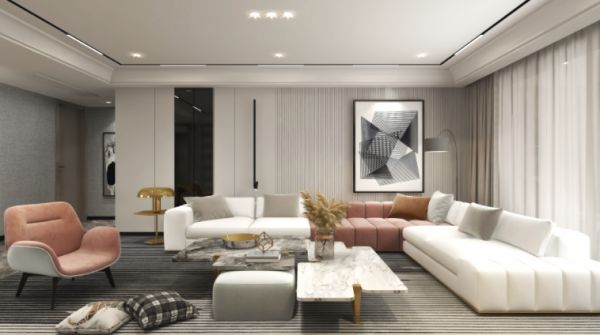 当然,如果你喜欢轻奢氛围多一些,可选择金色的饰品或黑白挂画搭配,为空间增添精致华丽感的同时还能中和粉色的柔美感,令人在寒冷冬季也能感受别样的舒适和惬意。