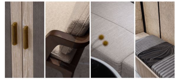 在名耀家具的设计之中,充分发挥材质的天然美、凸显强化材质的工艺美一直是名耀家具设计的重要手法,尤其是恰如其分的运用不同材料、质地、肌理的配合,通过组合应用和对比的手法获得丰富生动的家具艺术效果;精准的捕捉和把握家具形态结构、细节比例尺寸。