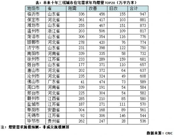 四,三线:市辖县成为刚需增长主战场,临沂、保定等四市年需求增量超800万㎡