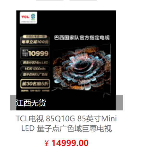 小姐姐说是双十一刚换的TCL Q10G,还说是“年度最值得买的电视”,我寻思要不双12自己给家里也换一台,结果上网在各大电商平台溜达了一圈,发现竟然全渠道断货,这都什么年头了还能断货,不过转念一想,高配置、亲民价,懂电视的肯定抢着买,断货也是正常,我还是看看怎么能买到吧。