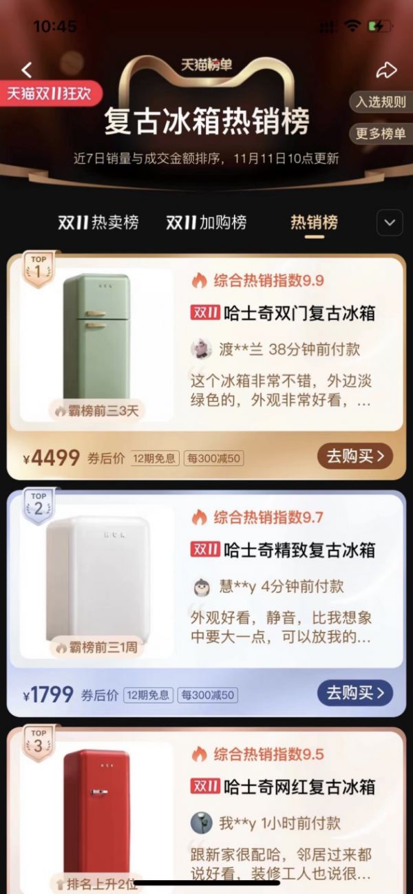HCK哈士奇再次出手即王炸!本届天猫双十一“冰吧”、“复古冰箱”两大品类霸榜前三!