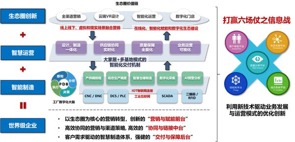 通过信息化平台打通了前端营销、设计和后端制造,从传统制造的信息化上升到全方位的数字化,实现了线上线下、虚拟和现实场景融合营销,提升客户转化率和客单价;实现了营销精益化经营,全面提升渠道终端客户和用户的服务水平和服务口碑;通过营销系统集成实现了各业务系统数据集中,使内外部数据统一,订单全流程可控可视。
