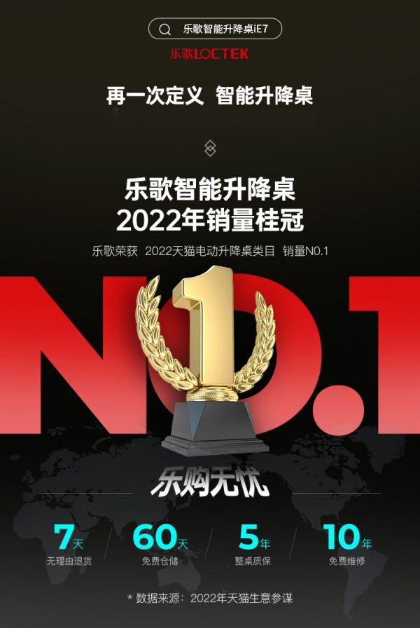 而长期与孩子为伴的学习书桌也成为了被升级的首要阵地,一时之间儿童学习桌成为家长们眼中的香饽饽,智能升降类学习桌产品也随之逐渐崭露头角,该赛道的头部品牌乐歌Loctek也作为行业佼佼者与智能升降学习桌品类形成强绑定,缔造了“连续8年销量第一”的业绩神话,成为大部分家长们挑选学习桌的首选品牌。