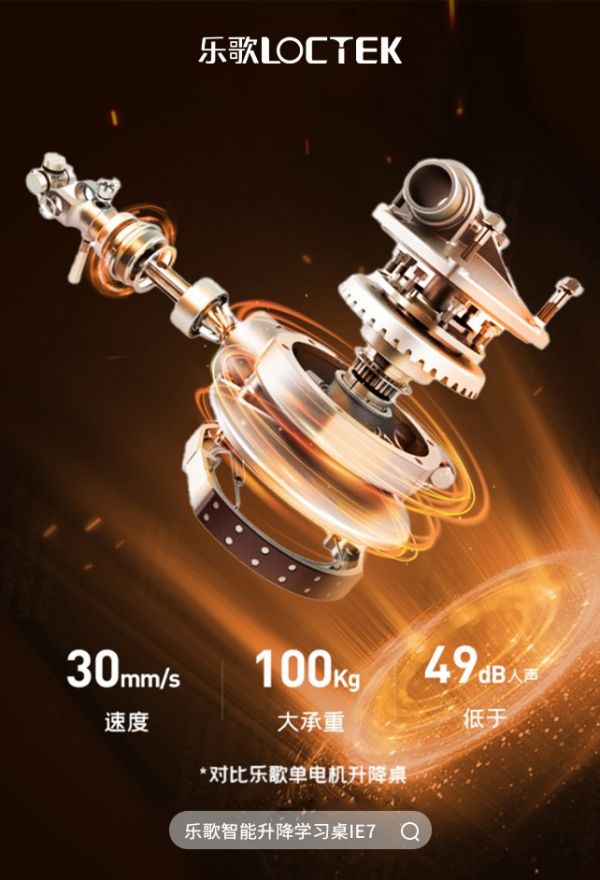 而在升降这个主要使用场景中,乐歌也不单单只做了调节高度这一件事。在智能升降行业深耕多年,乐歌对于用户的“挑剔”一清二楚,深谙保证升降平稳性才能获得用户认可这一道理,而电机则是保证这一性能的关键。所以,乐歌一直以来都坚持自主研发电机,以iE7智能升降学习桌为例,搭配双电机配置,速度以及稳定性大大提升。