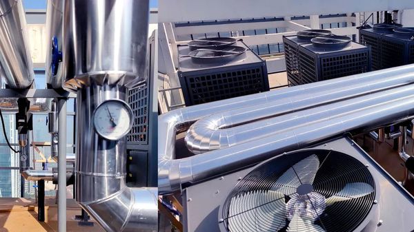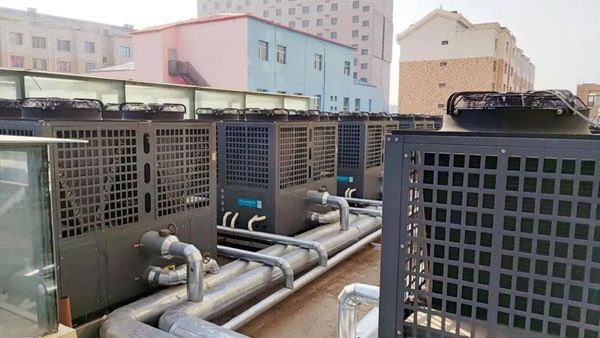 系统设备:5台50P超低温空气源热泵、CAS清洁能源耦合智慧操作系统