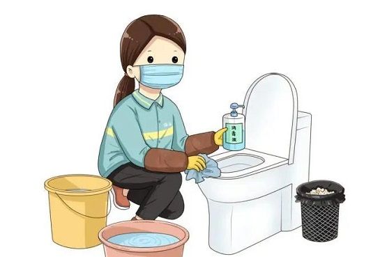 对于卫生间内外门把手、洗手池台面、水龙 头开关、洗手盆、马桶按钮等经常接触的物体表面,可使用75%浓度的酒精或含氯消毒液擦拭或喷洒进行消毒。消毒后用清水擦拭。避免卫生间内积存细菌,对人体造成危害。