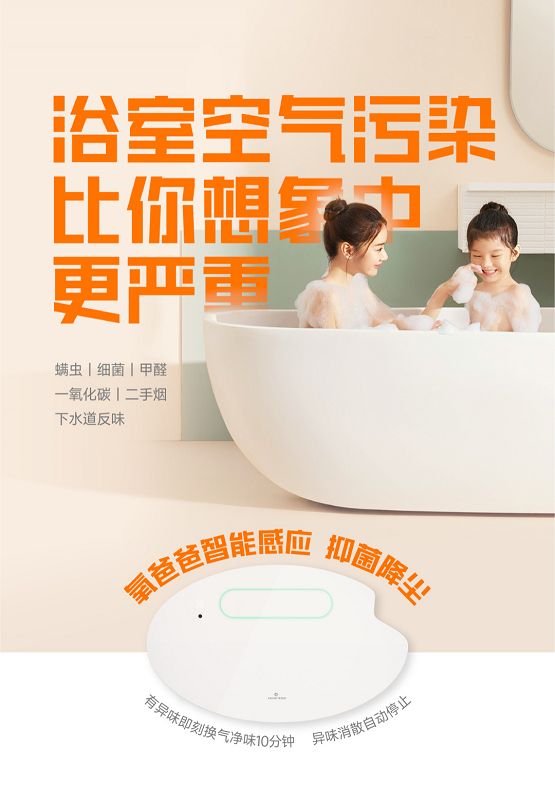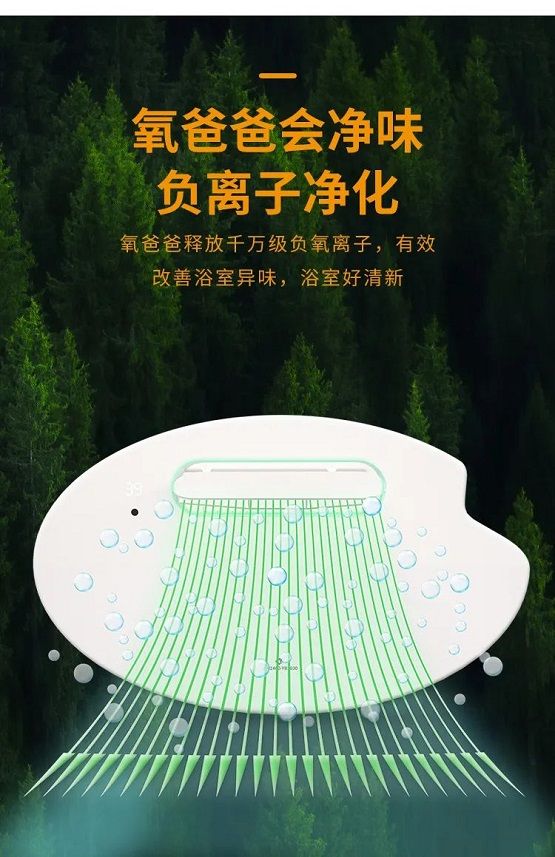 氧爸爸采用全自动智能净味科技,搭载“等离子+异味感应”双净化功能 ,通过异味感应、即时除味、实时监测,实现卫浴空气的深度净化,99%除菌率,瞬间杀灭细菌病毒,较比普通滤网拦截净化更彻底。远离二次污染,有效保护家人健康。