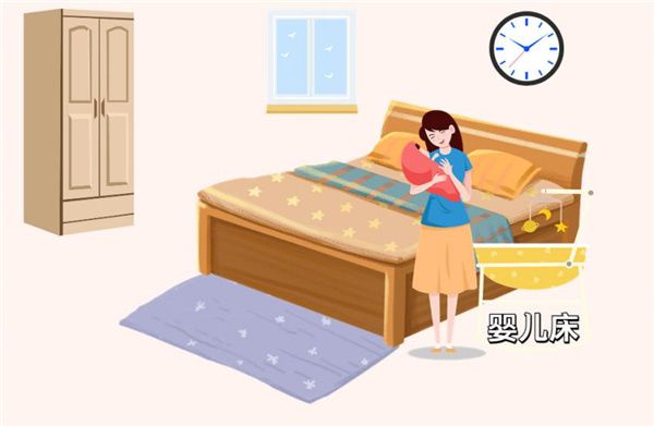 建议将婴儿床紧靠在床的一边
