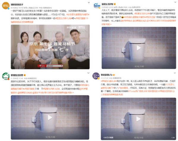 与此同时,在传播层面,京东联合《瑞丽家居设计》微博,家居、生活方式等微博达人共同发力,打造“智慧生活新七待”微博话题,精准覆盖垂直目标人群。极具故事感与感染力的传播内容,在凸显好马桶重要性的同时,也在不断同受众产生强有力的情感链接,引发新老用户对于智能马桶节的好奇心与关注度,助力活动曝光与营销心智的传达。而小红书及站内种草内容,在覆盖多平台传播的同时,也实现营销传播的品效合一。