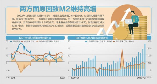 对此,光大银行(601818)金融市场部宏观研究员周茂华接受《每日经济新闻》记者采访时指出,2022年12月M2同比增速继续维持高位,略高于名义GDP增速,反映稳健货币政策支持力度持续增大。居民信贷同比收缩,居民储蓄存款同比多增,反映短期疫情对经济活动干扰,影响居民消费活动,同时,房地产处于筑底企稳阶段,楼市需求暂时偏弱。