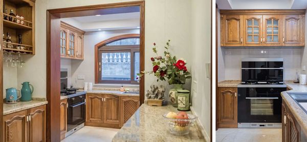 李先生的家装修高端大气,复古味十足。女主人热爱艺术,并将其融于生活之中,因此,家中有着许多装饰画和艺术雕塑,各种摆件的陈列如美式电影风格一般。半开放式厨房的设计是客厅的延续,花梨木橱柜与拱窗极具电影氛围感,森歌集成灶A8蒸箱款镶嵌其中,不仅毫无违和感,反而更显高级,来看看它是如何轻松拿捏的吧!