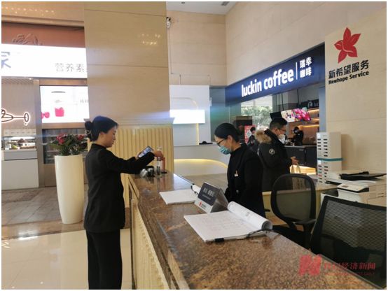 贺子芸的常驻办公地点是成都新希望大厦,例行巡查项目就是她每天上班第一件要做的事。地面有无垃圾、车辆停放是否规范、墙面干净与否,这些都是贺子芸在日常巡查的重点,而在此期间还不时会停下来接听电话,安排处理其他两个项目上的事情。