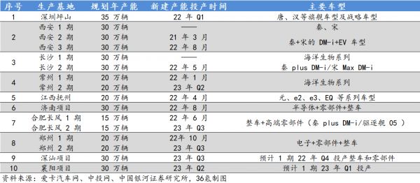 西安三期(30万辆)、长沙二期(30万辆)、常州一期(20万辆)、江西抚州(20万辆)、济南(30万辆)、合肥长丰一期(15万辆)、郑州一期(20万辆)在2022年相继投产;