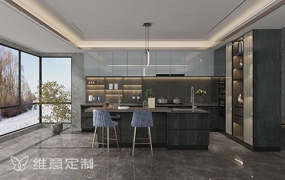 遵循「洗涤-烹饪-备餐-储物」黄金动线,L型厨房+岛台设计,居家时光温馨自在。