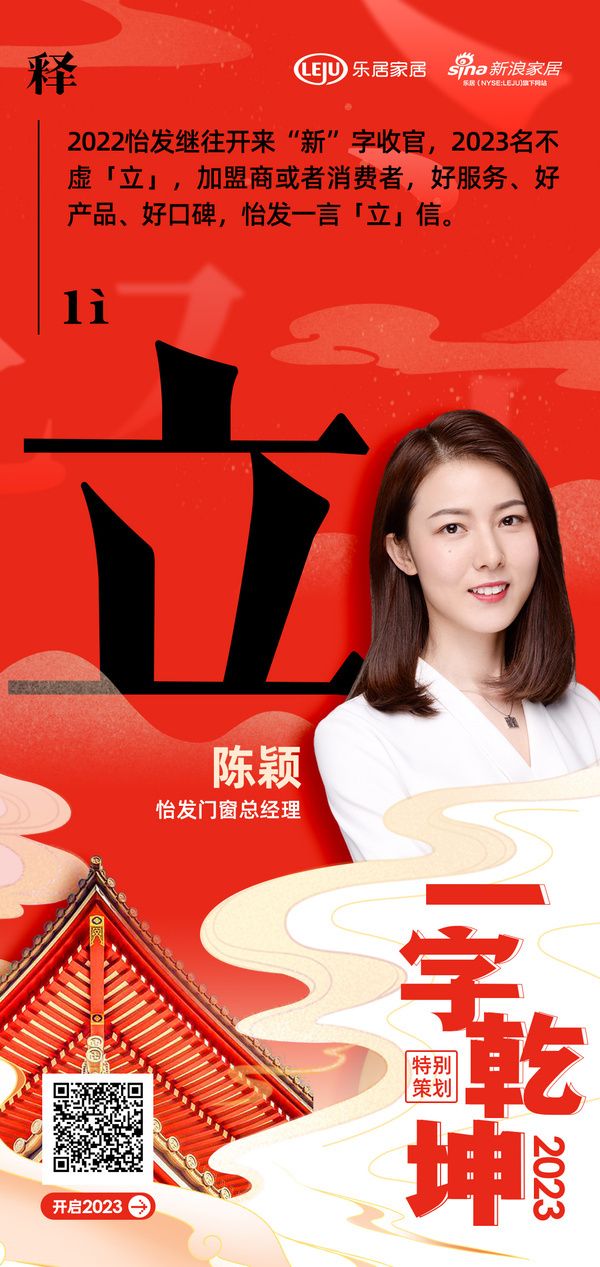 在“2023 一字乾坤”活动中,怡发门窗总经理 陈颖用「跃」字表达了2023年的规划策略及目标:「跃」,是厚积待发,亦是向新十年的跃进,是向智能化生产的跃进。其邦新的十年,其邦智能生产园正式投产。横戈「跃」马,持续推动门窗业发展,为行业创造价值。