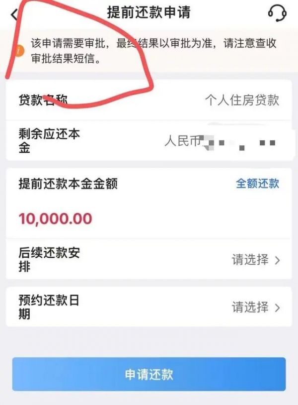 近期,小金的想法有所改变,打算提前还一部分。然而当他打开手机银行却发现,提前还款需要审批,“最终结果以审批为准”。