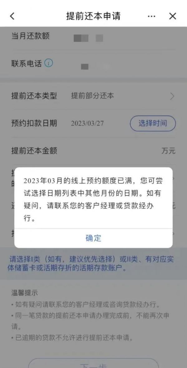 王女士对记者表示,她于近日在某国有大行手机APP上申请提前还贷,提交申请后,下午收到银行短信称提前还款申请已审批通过,但还款的日期已排到了4月份。王女士向记者无奈地摊了摊手,“没想到,现在怎么这么多人排队还贷。”