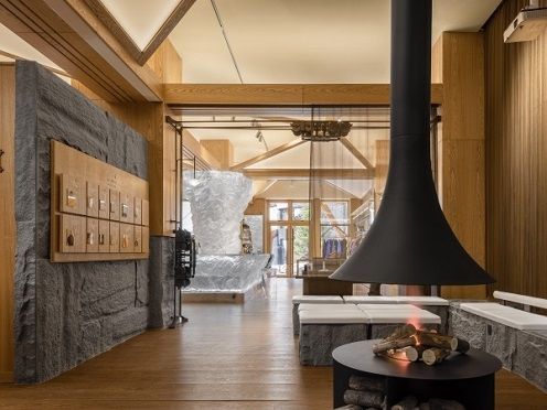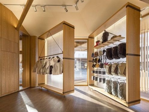 以壁炉为中心的训练区,借鉴了帐篷、缆车、岩石等设计元素,创造了不同以往的零售空间,更传递了ARC'TERYX始祖鸟探索自然的品牌价值观。