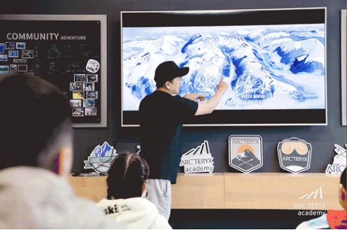 ARC'TERYX始祖鸟山地课堂北大湖店也是品牌重要活动——山地课堂的体验中心。这里提供多种多样的滑雪公开课,为品牌粉丝搭建了具有专业户外运动和社交属性的大本营。