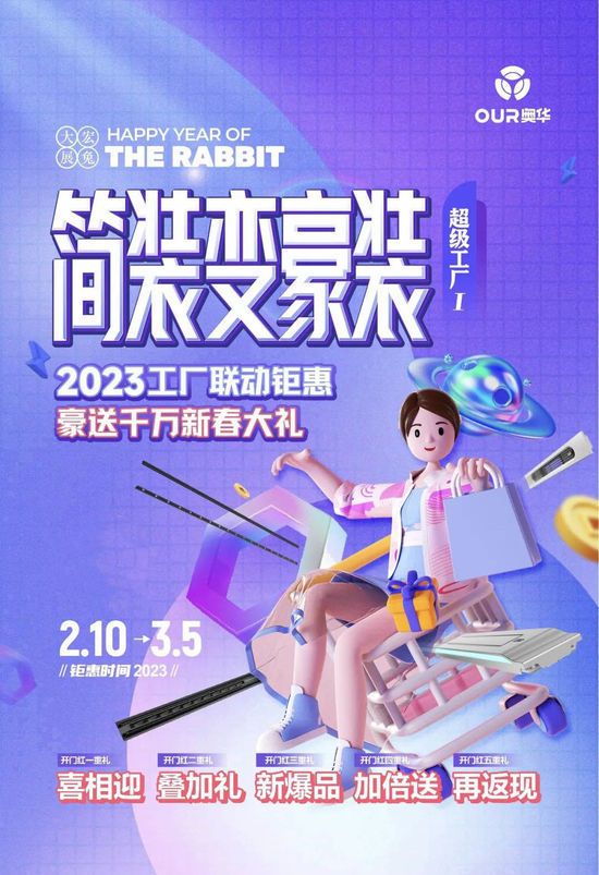 奥华一直以来坚持以用户为中心,让消费者花更少的钱,装更好的家。2月10日-3月5日快来奥华抢购吧,解锁更多活动豪礼!