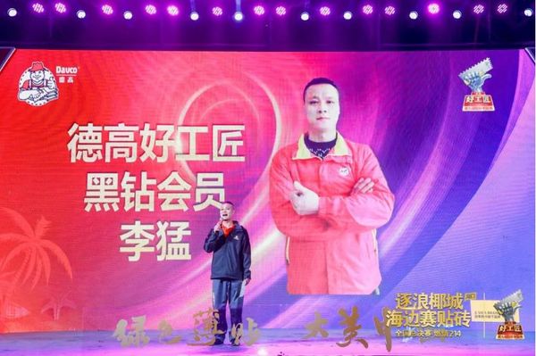 我平时就是德高瓷砖胶的铁粉,买德高瓷砖胶,不仅因为它质量有保证好施工,还因为它可以扫码收绿能,能够保护环境。这非常有意义,所以我每次买了德高瓷砖胶,我都会很认真地把码都扫了。这一次,能够从海选赛慢慢晋级,最后以总决赛参赛选手及黑钻会员的身份来到海口非常激动,这是我第一次来到海口,能够与这么多同行学习切磋,非常难得,真的很高兴,也很感谢德高好工匠平台,让我体验黑钻尊贵之旅,也希望有更多的好工匠,可以积极参与有意义、有趣、有收获的会员活动!