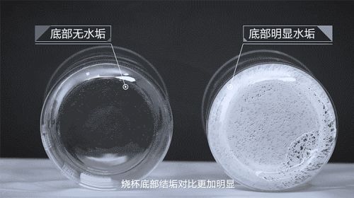 为了直观看到阻垢效果,我们配置了400PPM的硬水,并通过这款产品的阻垢模块对水进行处理,倒入烧杯内,同时与未经处理的水分别加热,观察沉淀的水垢情况,如图所见。