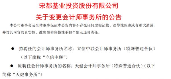 “为保证审计工作的独立性与客观性,拟聘任立信中联会计师事务所(特殊普通合伙)为公司2022年度财务审计机构及内部控制审计机构。”宋都股份称。2月27日公告显示,宋都股份三位独立董事CHENRENBAO、李迎春、赵刚在经过事前审查后同意了变更。
