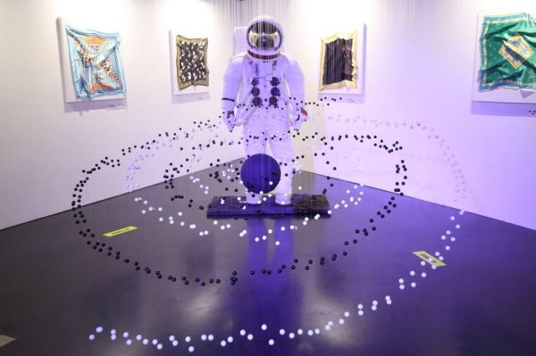 展览共分为四个展区,均以“奢品美学定制丝巾”进行贯穿,用以阐述每个展区的主题。展区一为“保时捷美学”主题丝巾展,以明亮的色彩表达“跑车”的灵动感;展区二创意地从空中悬挂耳麦,让参展的人们可以自由地佩戴耳麦,倾听来自产品的“故事”;展区三展览的丝巾以“NASA”为主题,表达科幻与高级的结合,还运用装置艺术形式绘制了一幅立体的星际图案与星空梦幻产生连接,让梦想穿越成生活的组成部分;展区四以“菲拉格慕香氛”为主题,包括丝巾展、气球悬挂香片展,以丝巾从视觉上带来轻奢效果,以香片从味觉上带来明媚生活的愉悦感。同时,每款丝巾都带来细腻的、如肌肤般的触感,让触觉的高级可以被真实体验到。