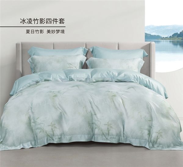 如果说春夏季有一种面料,让人爱不释手,那必然是天丝无疑。天丝以可持续发展的天然木浆作为原料,天生凉爽柔滑。艾莱依家纺冰凌竹影采用60兰精天丝,更是天丝中的高品质象征,其纤维强度、细度、均匀度、色泽、颜值等,都较普通天丝更为出色。并且,兰精天丝卓越的控湿气性能,更可以让被窝持久干爽和抑制细菌及螨虫的滋生,使被窝凉而不冰,肌肤润而不燥。水墨画是中国绘画的代表,是中国本土所特有,且具有渊源历史传承与深厚文化积淀的东方艺术,冰凌竹影就采用以东方竹叶元素为主题的水墨画花型,将盛开半夏,竹叶婆娑起舞,竹子不同的姿态,通过床品充分展现,驱散春夏季人们心中的闷热,传递出禅意的自在生活态度,让人心旷神怡,无忧好眠。