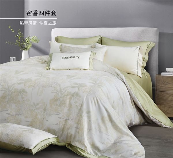 进入春夏,怎么躲得开热带风情,艾莱依家纺密香四件套以青麦色为基调,以热带植物为设计元素,把手绘效果的自然花卉和石头魔术般融入白色底布,形成有趣的互动画面,在小小的卧室之中,奇思妙想般的营造出沉浸式的热带度假体验,释放出夏日生活的青春活力。与此同时,为带来全新睡眠体验,密香四件套选用的天丝锻面料,特别添加了高分子蚕丝蛋白成分,柔韧性和爽滑度更高。并且采用丹麦-生物酶退浆工艺,有效去除织物表面毛羽,减少织物强力损伤,维持织物结构的柔软蓬松,使面料绵柔触感,细腻平滑,舒适亲肤,带来春夏睡眠新享受。