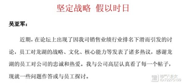 对此,龙湖前董事长吴亚军,曾在内部讲话《坚定战略 假以时日》中真切回忆: