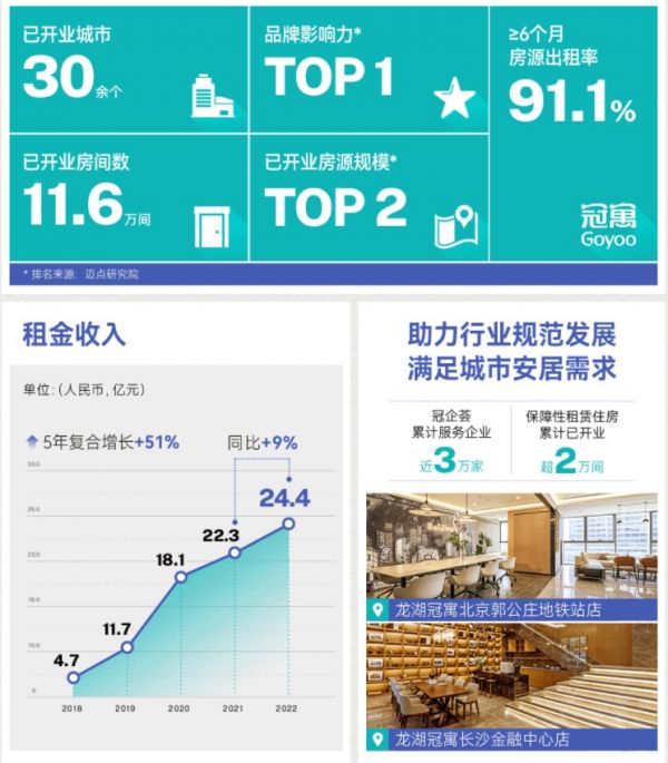 如今,龙湖冠寓已经拥有11.6万间开业房间,全年租金收入24.4亿元,品牌影响力位居行业第一。
