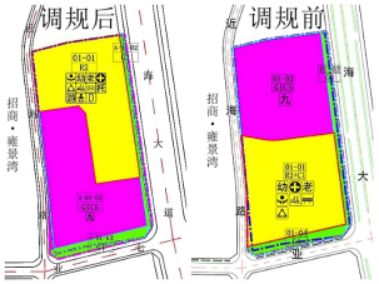 调整规划后,项目住宅及幼儿园部分由原先的地块南部调整至地块北部,且将建筑高度较低的幼儿园布置在地块北部偏西侧,从而降低了对一路之隔的雍景湾项目的采光影响。