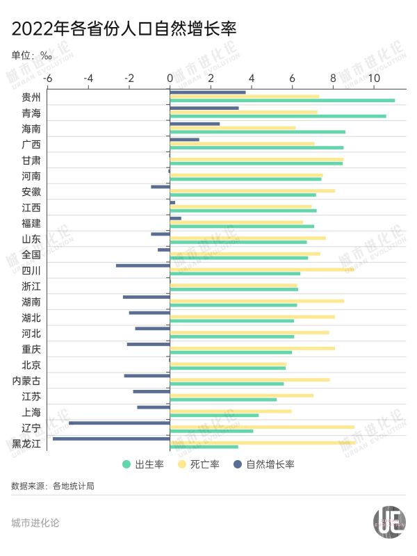 其中,贵州常住人口增量虽然由2021年的-6万人转变为2022年的4万人,但具体来看,其人口自然增长就有14.3万人——是已公布人口数据的省份中自然增长量最多的一个,也就是说,贵州还没有足够的吸引力,留下“自己人”。