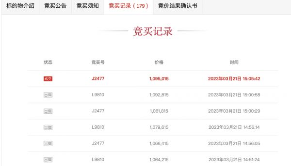 《每日经济新闻》记者从阿里法拍了解到,该套房源起拍价为94万元,评估价为134.82万元,保证金18万元,共有40人报名,吸引了25910次围观。最终总价504万元成交,溢价率434%。不动产登记信息显示,该房源房屋建筑面积912.78平方米,以504万元计算,折合约5522元/平方米。