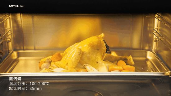 2.牙签扎孔,放入奥田蒸烤一体集成灶蒸箱,设置普通蒸,10分钟;