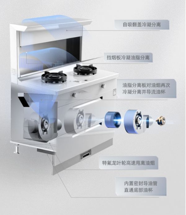 集成灶将烟机、灶具、消毒柜等模块进行独立式设计,各个模块整合一体又互不影响。这样一来,安全性能全面升级了,厨房安全也更有保障。
