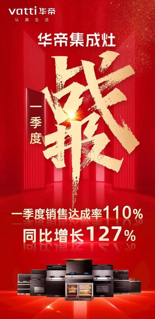 “2023年一季度销售达成率110%,同比增长127%!”华帝集成灶一季度战报一经披露,让整个集成灶行业看到一个久违的振奋信号。